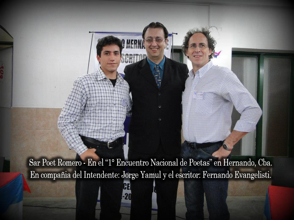 Romero Sergio Alejandro (1985), Persona sensible, plasma en las hojas mucho de sí mismo. Es desde los ocho años el soñador que se apodera de las alas del pensamiento para viajar más allá de la propia observación, para nutrirse de los detalles y generar una filosofía de vida, que tiene la misión de comunicar sentido, de atrapar la sensibilidad de momentos felices y de momentos tristes. De hacer de la soledad una compañía y del amor de una persona el tesoro más preciado. Mirar lo que se moviliza y se siente mientras la vida avanza en el camino de marcar un detalle justo a tiempo para ser historia en un poema o en un verso. Amar es no solo vivir y transmitir, es soñar y sentir, es compartir. Sar poet Romero es el seudónimo que adopta para ser un soñador y un escritor desde la inocencia del anonimato. Hoy se acerca un poquito a la gente para mostrar la luz de su alma, con el motivo puro de soñar en las palabras la magia de la poesía.